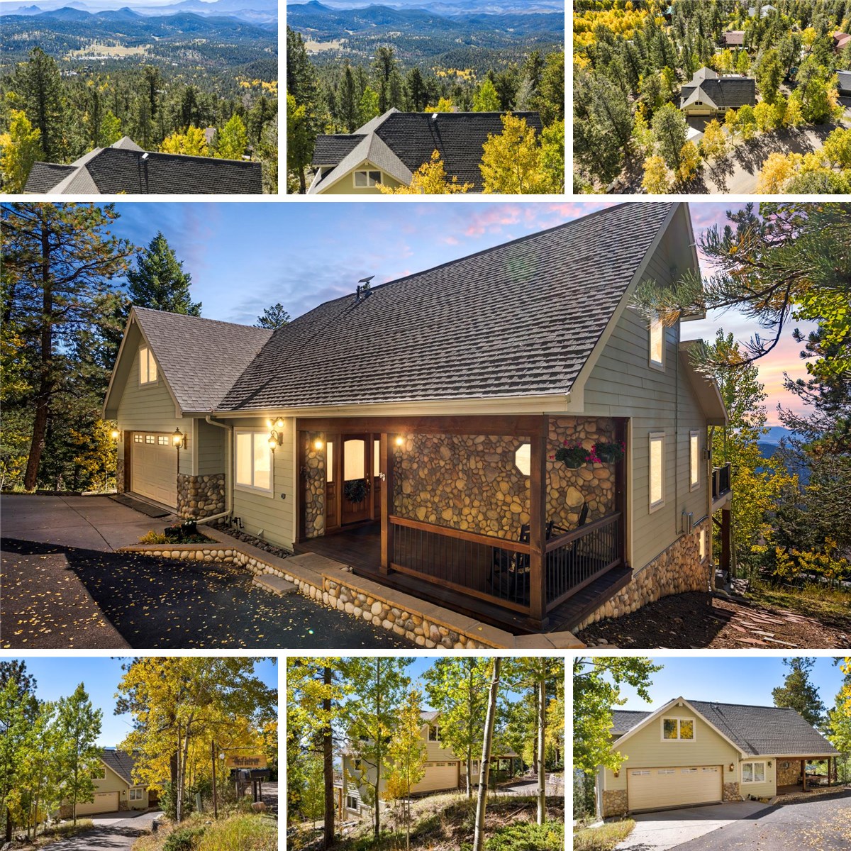 If you’ve been dreaming of big mountain views, this one is going to steal your heart. From the moment you pull up, the curb appeal delivers. A charming rocking chair front porch welcomes you home, the kind of spot where coffee tastes better and sunsets feel longer. And in the winter? You’ll especially appreciate the heated driveway. No early-morning shoveling, no ice skating to your car. Just easy mountain living. And then… the views. We’re talking 180-degree, sweeping, snow-capped Pikes Peak views with the valley unfolding below. Whether you’re inside or out on the expansive deck, this home was designed to show off Colorado’s greatest hits. The deck is perfect for entertaining, summer dinners, or simply sitting back and letting the mountains do their thing. Inside, the updated kitchen features a Viking gas range for those who love to cook, and it flows beautifully into a large dining room with vaulted ceilings and a picture window that perfectly frames the view. Hardwood floors add warmth and timeless character throughout the main living spaces. The primary suite feels like a true retreat, complete with a remodeled en suite bath and a spacious walk-in closet outfitted with custom shelving. Upstairs, there’s an extra-large bedroom that offers incredible flexibility. It could easily serve as a second primary suite, a home gym, a craft or art studio, or whatever your lifestyle calls for. The possibilities are wide open. Downstairs, the lower-level rec room with a wet bar is ready for game nights, movie marathons, or hosting weekend guests. Behind the scenes, this home is dialed in. Solar panels help with energy efficiency, and a new boiler and water heater provide peace of mind. It’s also connected to community water and sewer, so there’s no well or septic to maintain. And as an added bonus, a second vacant lot is included, giving you extra privacy and room to breathe. If you’ve been waiting for the one with the view, this just might be it.